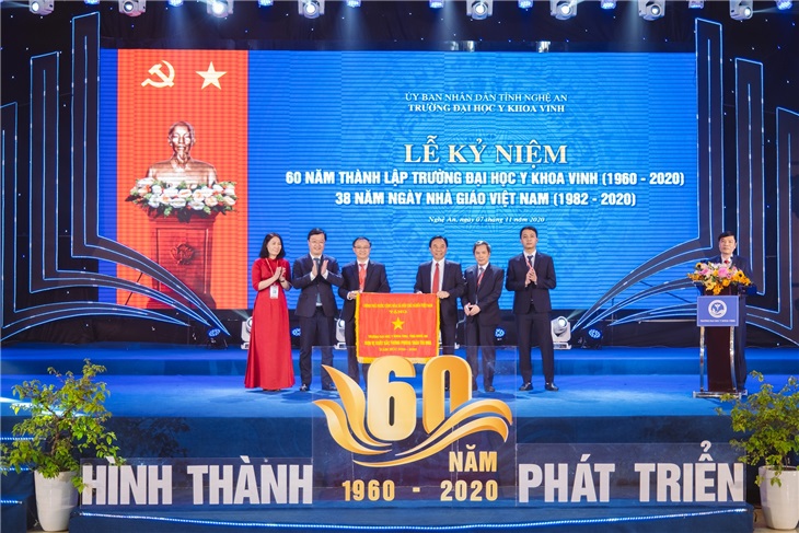 Chiều 7/11, Trường Đại học Y khoa Vinh long trọng tổ chức Lễ kỷ niệm 60 năm thành lập (1960-2020) và chào mừng 38 năm Ngày Nhà giáo Việt Nam (20/11/1982-20/11/2020). Về dự lễ kỷ niệm, có PGS.TS Hoàng Minh Sơn - Thứ trưởng Bộ Giáo dục và Đào tạo; PGS.TS Nguyễn Vũ Trung - Phó Cục trưởng Cục KHCN và Đào tạo Bộ Y tế. Đại biểu lãnh đạo tỉnh Nghệ An có đồng chí Nguyễn Văn Thông - P. Bí thư Thường trực Tỉnh ủy; đồng chí Nguyễn Xuân Sơn - Chủ tịch HĐND tỉnh; đồng chí Nguyễn Đức Trung - P. Bí thư Tỉnh ủy, Chủ tịch UBND tỉnh. Cùng các đồng chí Ủy viên BTV Tỉnh ủy: Lê Đức Cường - Trưởng Ban Tổ chức Tỉnh ủy; Bùi Thanh An - Chủ nhiệm Ủy ban Kiểm tra Tỉnh ủy; Nguyễn Ngọc Hà - Chỉ huy trưởng Bộ Chỉ huy Quân sự tỉnh và đồng chí Bùi Đình Long - Phó Chủ tịch UBND tỉnh.