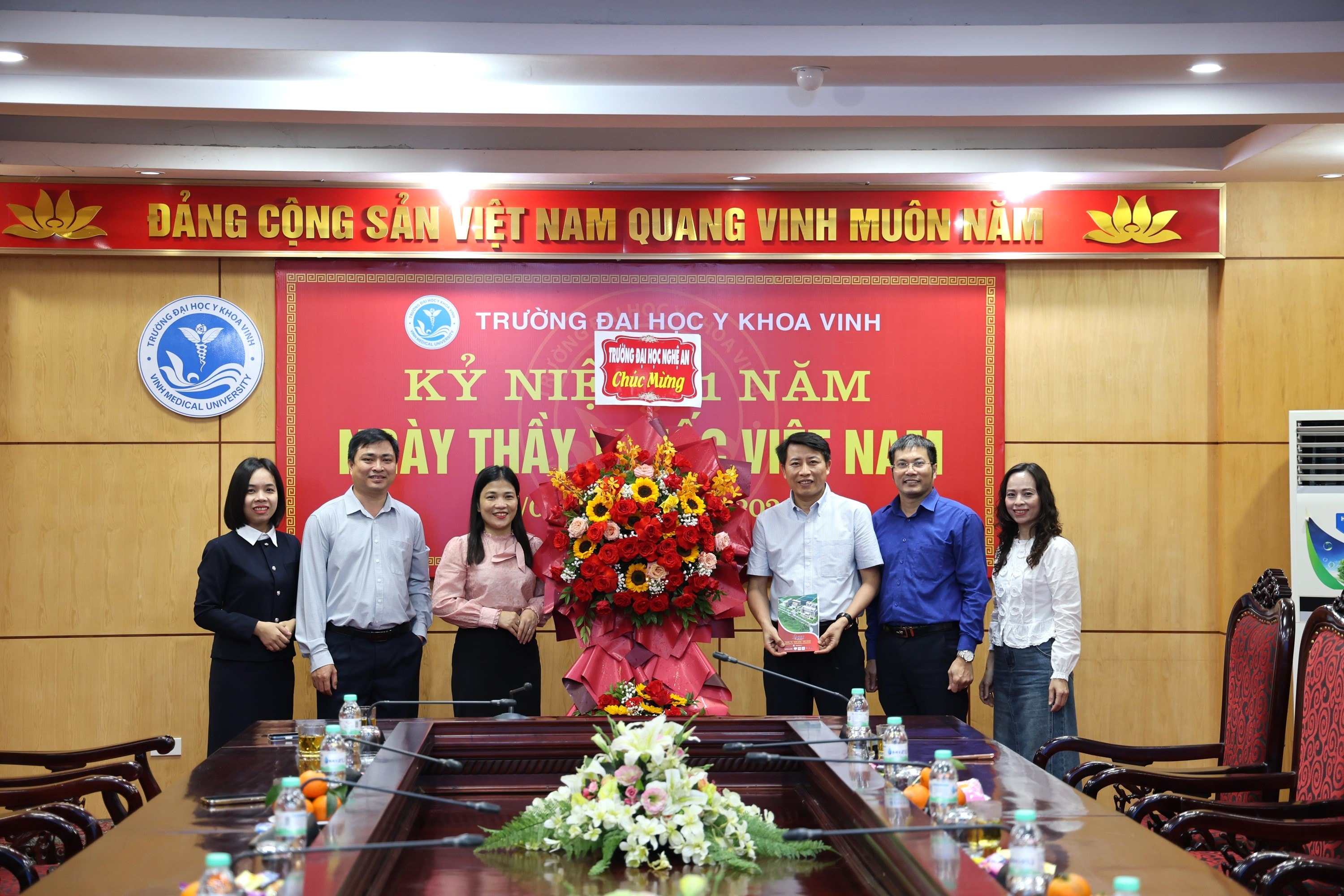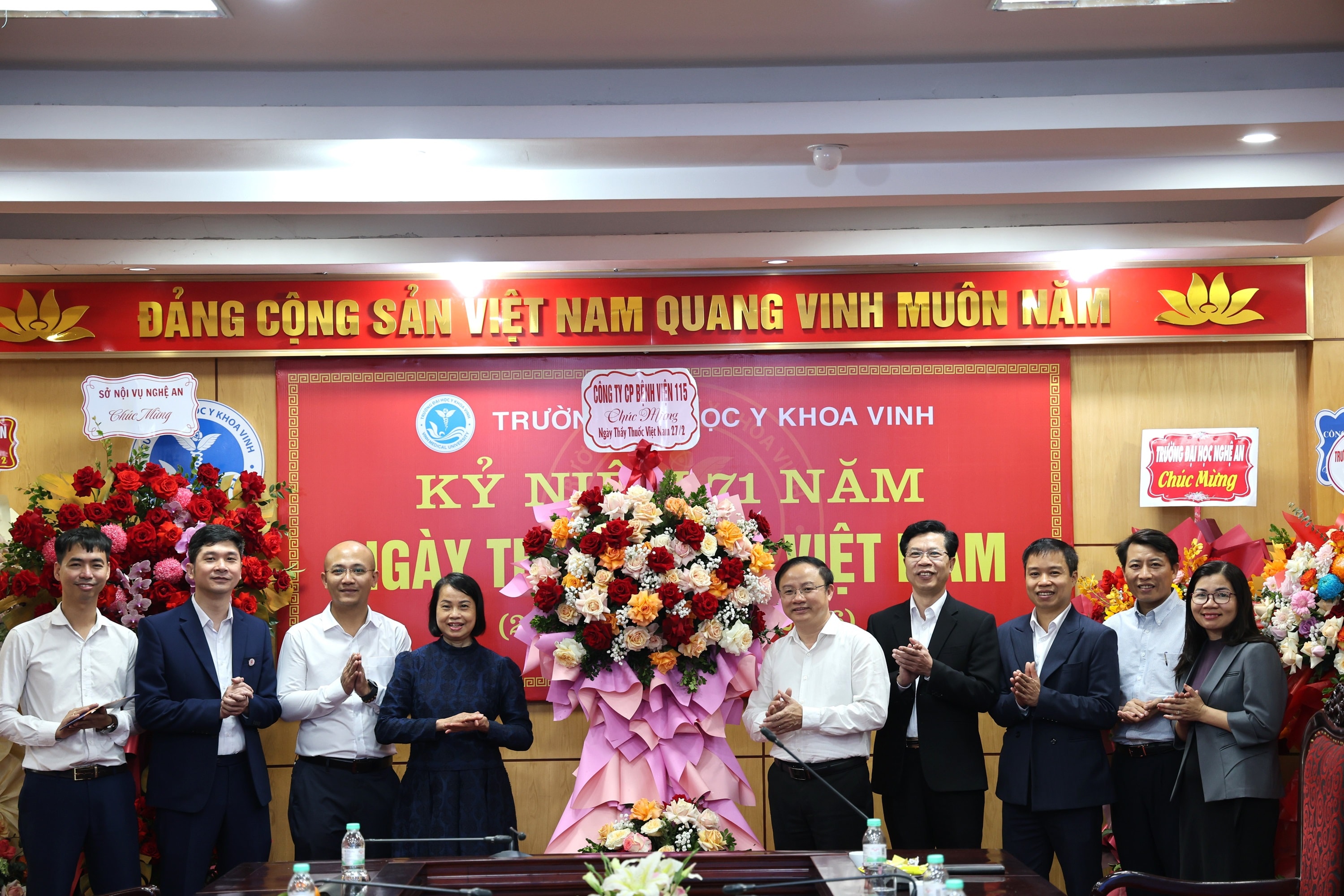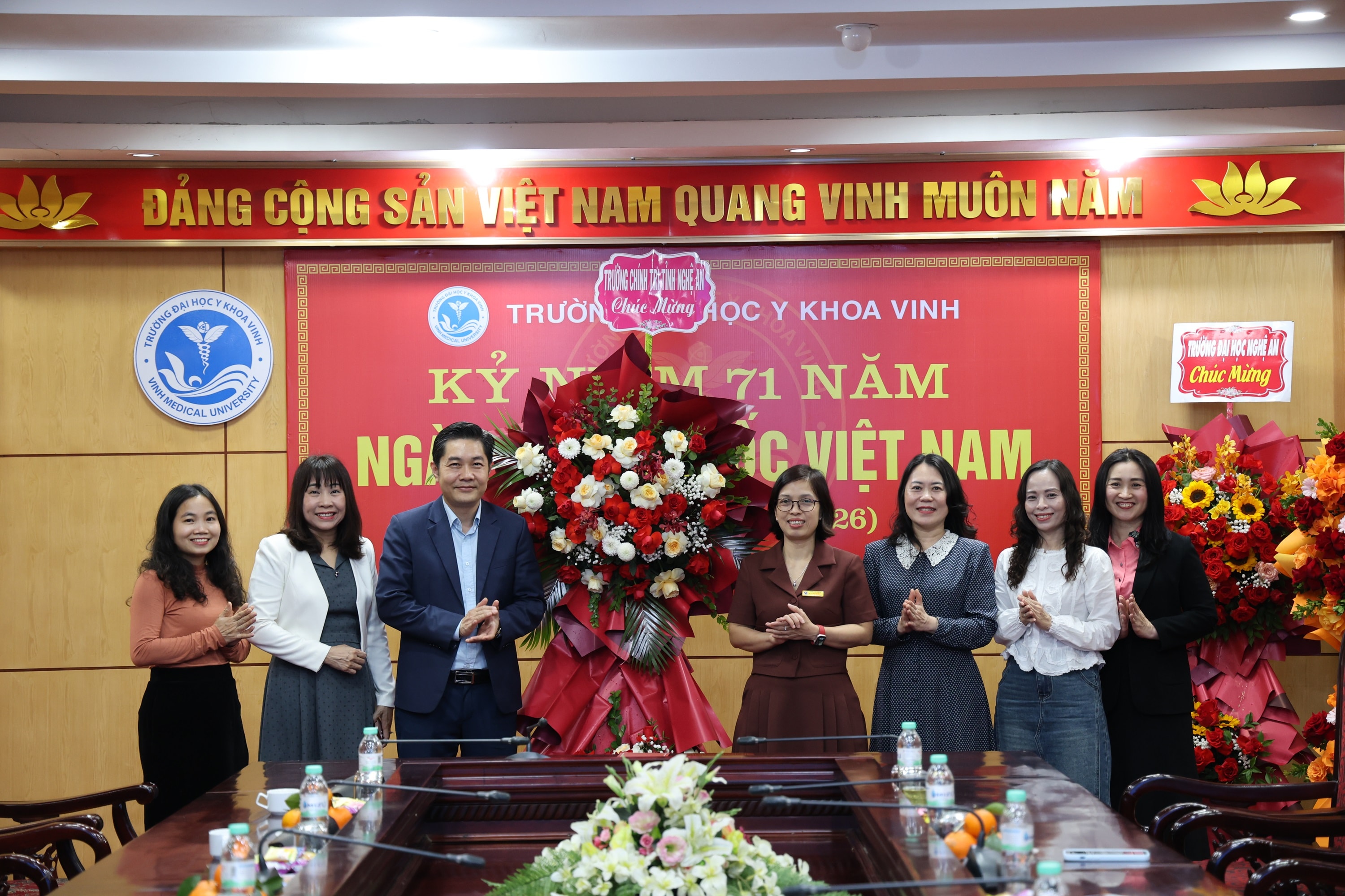 Nhân dịp này, Đại học Y khoa Vinh vui mừng chào đón sự quan tâm, chúc mừng của các cơ quan đơn vị trên địa bàn. Đây thực sự là hành trang to lớn đối với cán bộ giảng viên, sinh viên nhà trường trên con đường đào tạo người Thầy Thuốc vững chuyên môn, tận tâm, tận hiến, giàu lòng trắc ẩn với nghề.