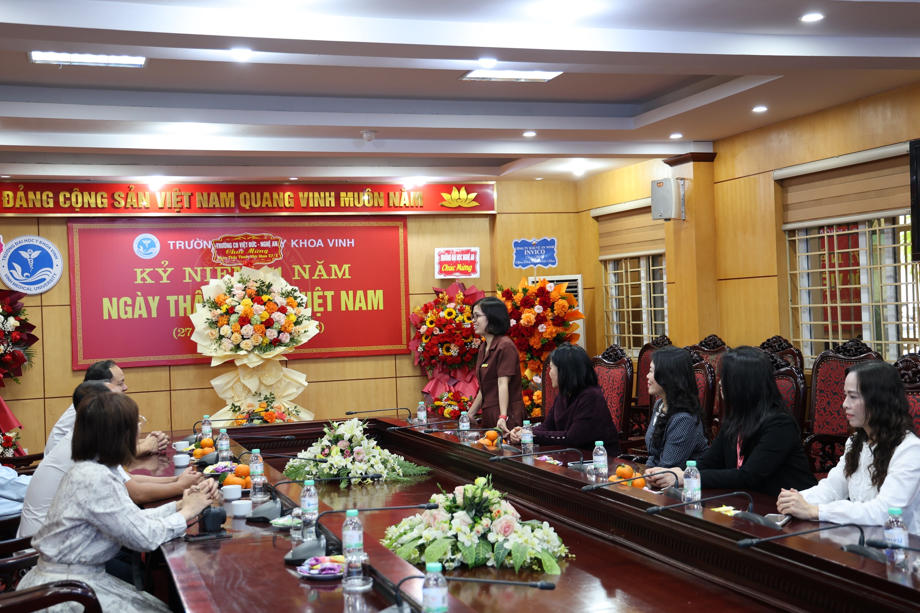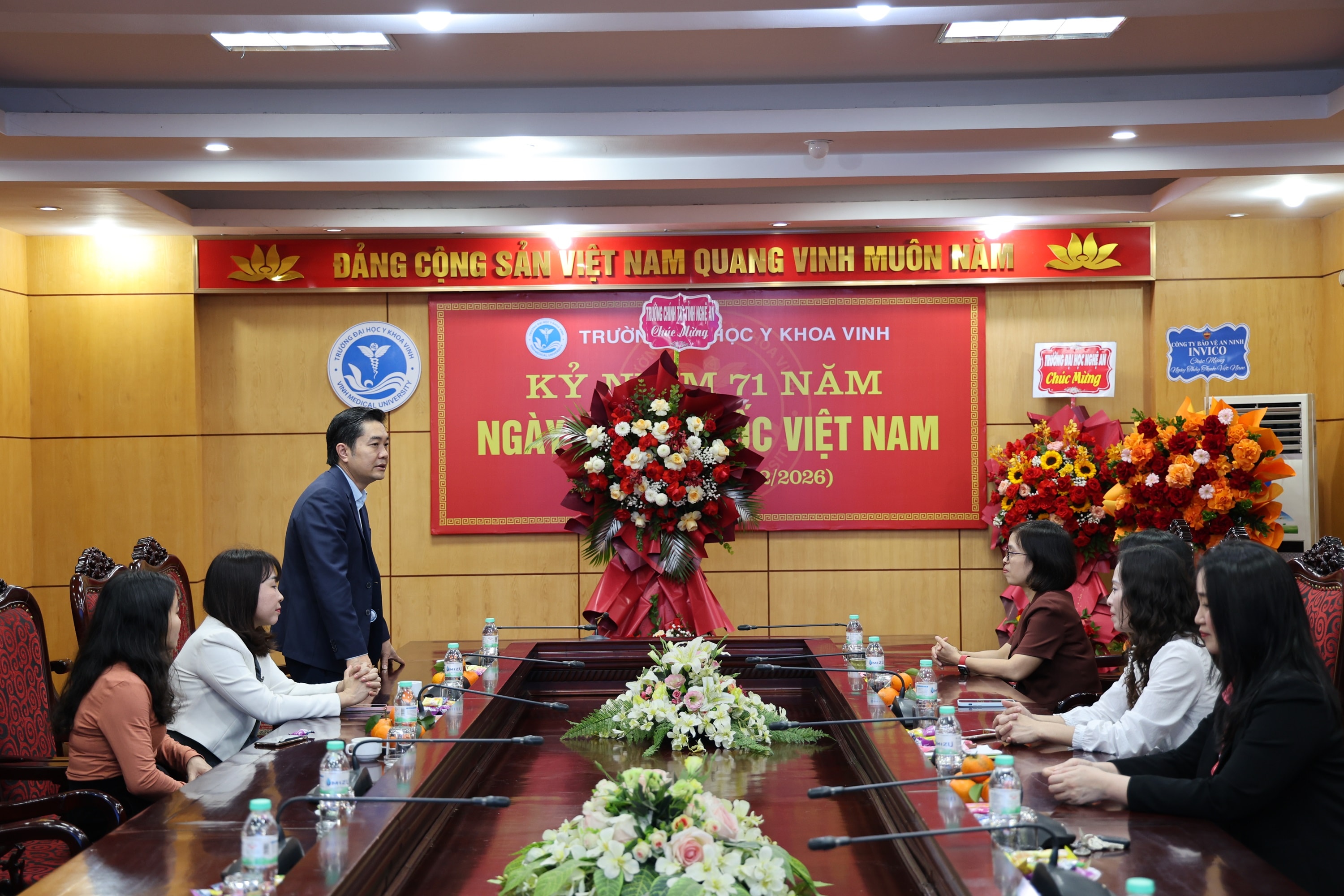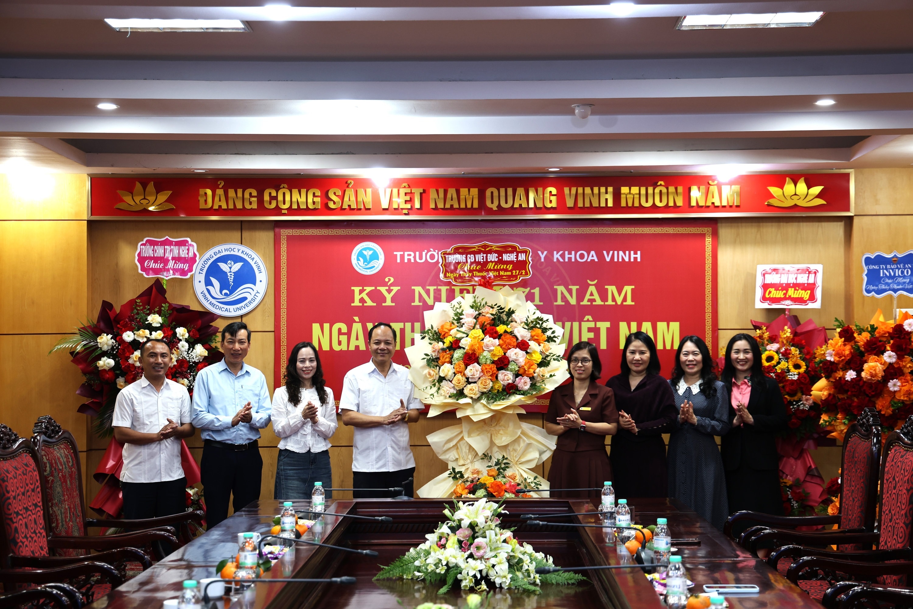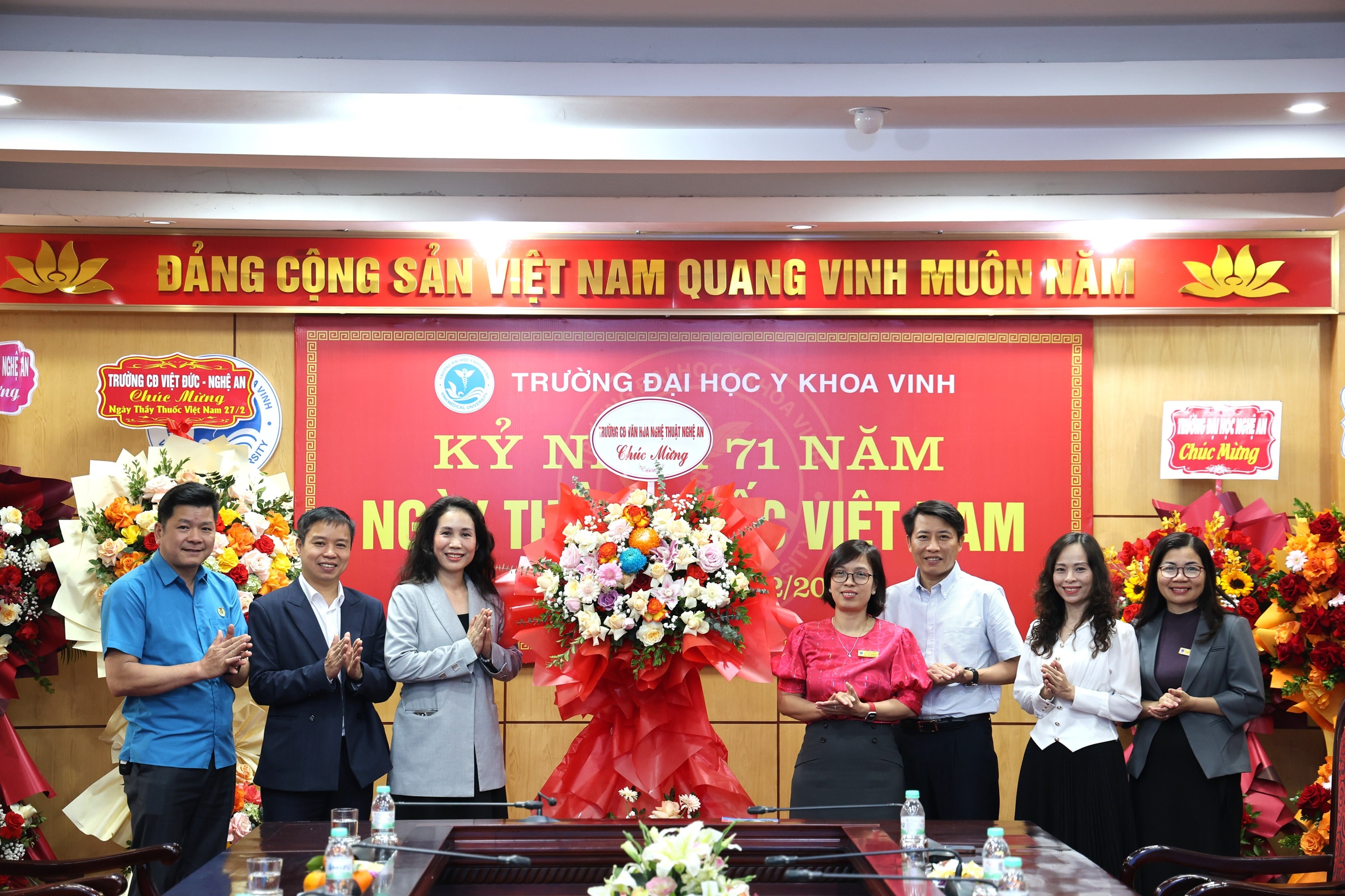 Nhân dịp này, Đại học Y khoa Vinh vui mừng chào đón sự quan tâm, chúc mừng của các cơ quan đơn vị trên địa bàn. Đây thực sự là hành trang to lớn đối với cán bộ giảng viên, sinh viên nhà trường trên con đường đào tạo người Thầy Thuốc vững chuyên môn, tận tâm, tận hiến, giàu lòng trắc ẩn với nghề.