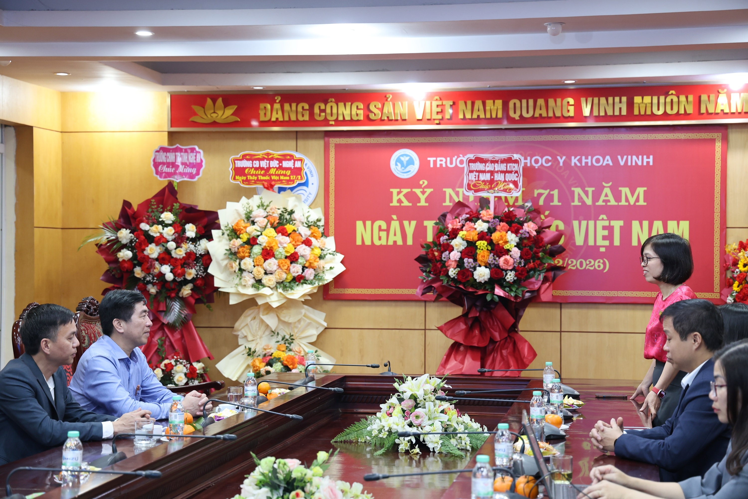 Trong tiết trời dịu mát của mùa xuân năm mới, trường Đại học Y khoa Vinh hân hoan chào đón các đơn vị sở, ngành và đơn vị bạn trong khối thi đua các trường đại học, cao đẳng tỉnh đến tặng hoa, chúc mừng nhân ngày Thầy Thuốc Việt Nam (27/2/1955 – 27/2/2026).