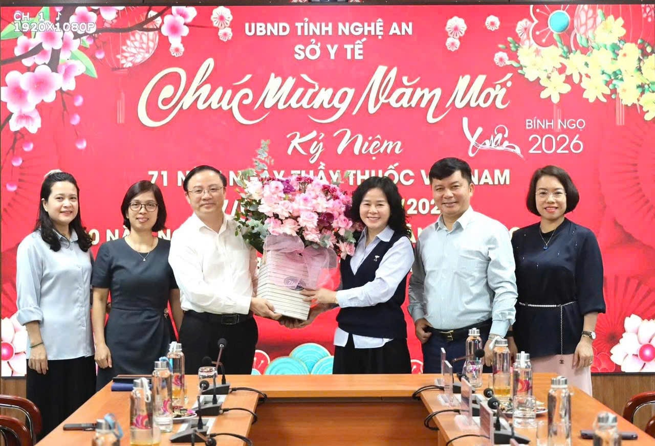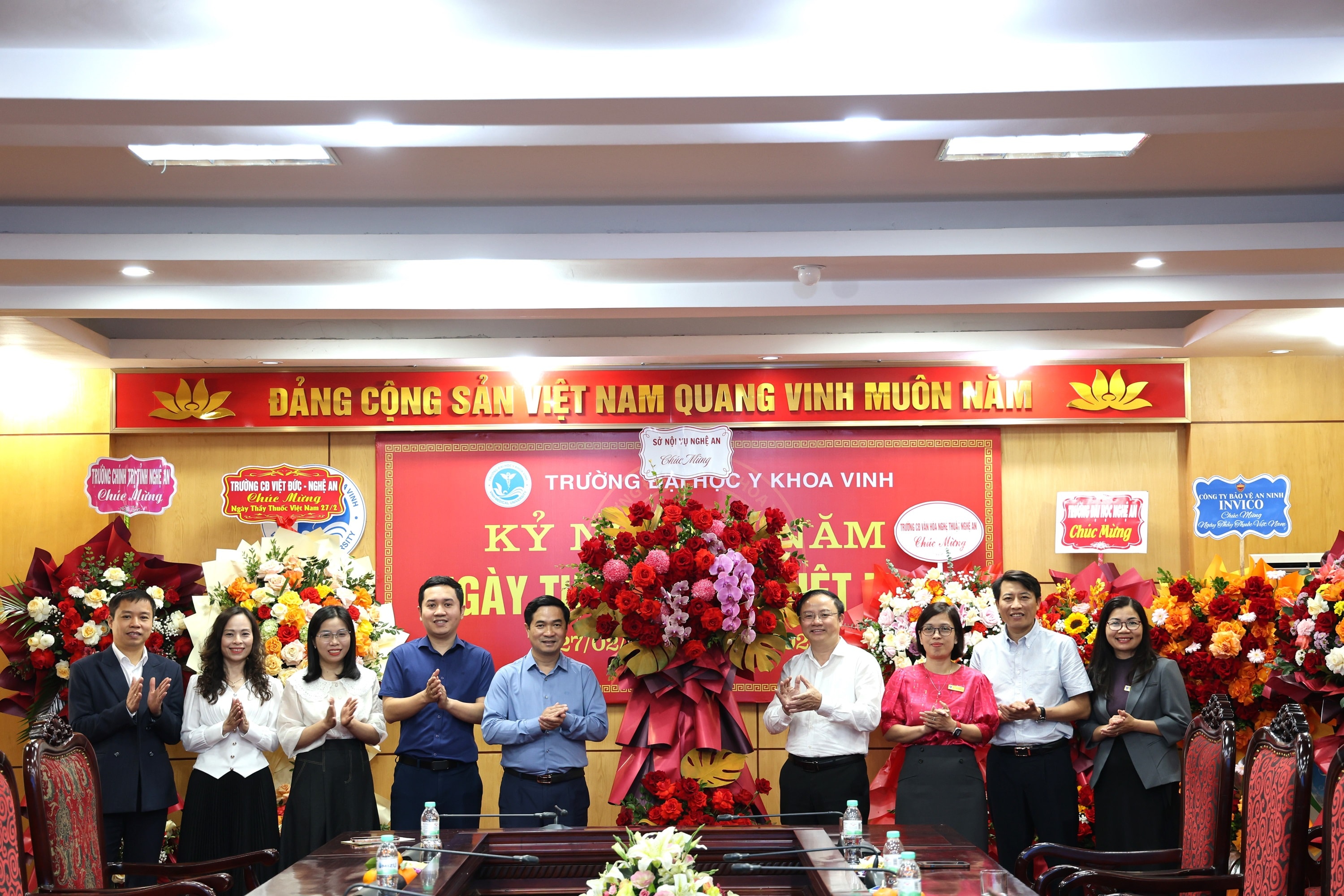 Trường Đại học Y khoa Vinh tặng hoa, chúc mừng sở Y tế Nghệ An (Ảnh: Tổng hợp)