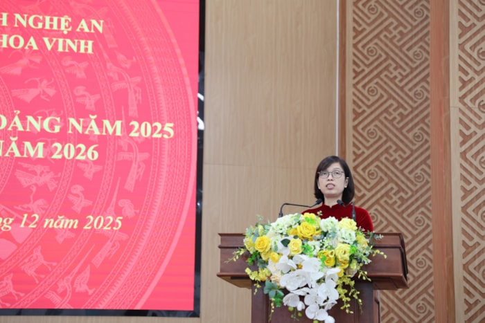 Phát biểu khai mạc Hội nghị, đồng chí Lê Thị Thanh Tâm - Bí thư Đảng ủy, Chủ tịch Hội đồng trường - nhấn mạnh, năm 2025 là năm có nhiều biến động về mọi mặt trên đời sống kinh tế, chính trị, xã hội của toàn Đảng, toàn dân. Đối diện và vững bước trước những thay đổi căn cơ của toàn hệ thống chính trị, đảng bộ trường Đại học Y khoa Vinh đã từng bước thích nghi và vận hành bộ máy đáp ứng yêu cầu khách quan với khối đoàn kết, thống nhất, ổn định về công tác tư tưởng và hoạt động chuyên môn. Đồng chí hi vọng toàn thể đảng viên nhà trường sẽ cùng nhau nhìn nhận và chỉ ra những ưu điểm, hạn chế, nguyên nhân tồn tại làm nền tảng cho việc định hướng cụ thể hóa hơn nữa những điểm mới cần điều chỉnh, những chỉ tiêu Nghị quyết cần bám sát hoạt động của nhà trường trong bối cảnh nhiều thay đổi, thách thức của năm 2026.