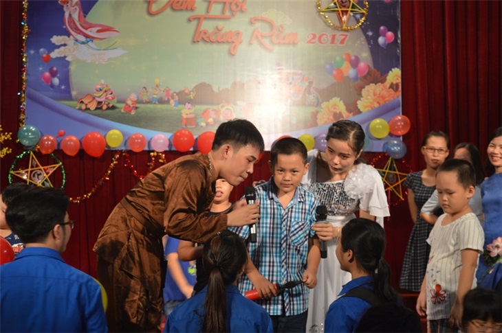 Tiếng nói cười trẻ thơ, tiếng nhạc rộn ràng, khán phòng tràn ngập sắc màu lung linh cổ tích của chương trình đã đem lại một bầu không khí náo nhiệt, ấm áp. Tụ hội đêm rằm có nhiều các em nhỏ thiếu niên, nhi đồng là con các CBGVVC nhà trường.