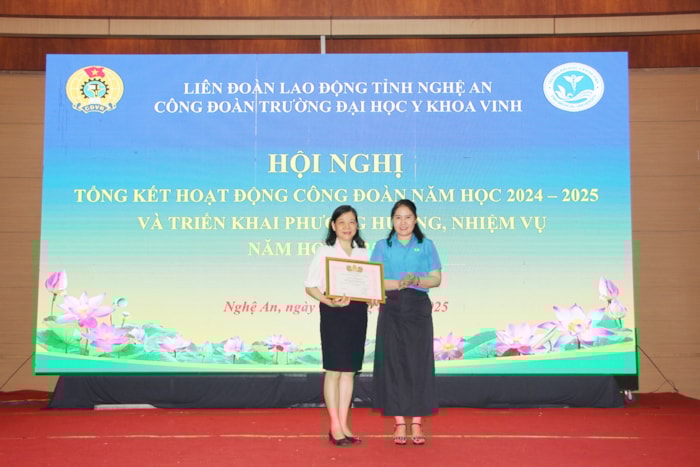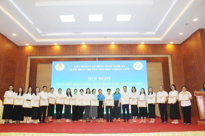 Ngày 02/8, Công đoàn trường Đại học Y khoa Vinh tổ chức Hội nghị tổng kết hoạt động công đoàn năm học 2024 - 2025 và triển khai nhiệm vụ năm học 2025 – 2026 với sự tham dự đầy đủ của toàn thể cán bộ giảng viên, viên chức, người lao động trong nhà trường.