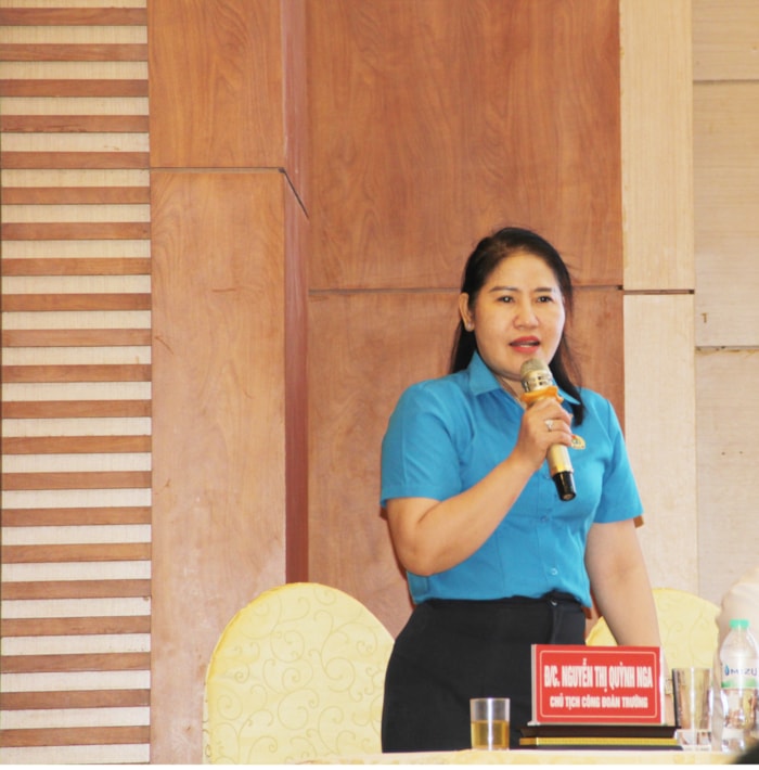 Đ/C Trần Thị Phương Oanh - ĐUV, Ủy viên BCH Công đoàn trường - phát biểu tại Hội nghị