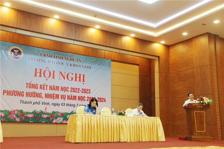 Chiều ngày 03/7, chương trình Hội nghị tổng kết năm học 2022 – 2023 và phương hướng nhiệm vụ năm học 2023 – 2024 của trường Đại học Y khoa Vinh đã diễn ra thành công tốt đẹp trong niềm vui, phấn khởi của toàn thể cán bộ giảng viên nhà trường.