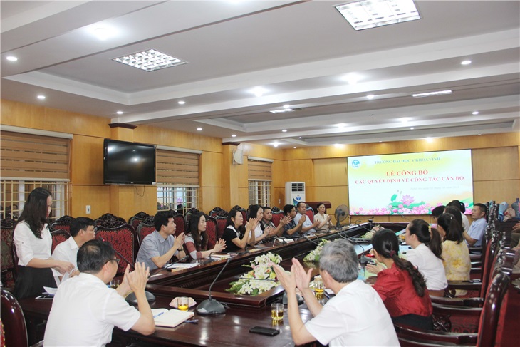 Sáng ngày 2/10, trường Đại học Y khoa Vinh tổ chức Lễ công bố các quyết định về công tác cán bộ. Tham dự và chỉ đạo buổi lễ có đồng chí Bí thư Đảng ủy Lê Thị Thanh Tâm, Hiệu trưởng Nguyễn Văn Tuấn, P. Hiệu trưởng Cao Trường Sinh cùng đại diện lãnh đạo khoa phòng và cán bộ giảng viên nhà trường.