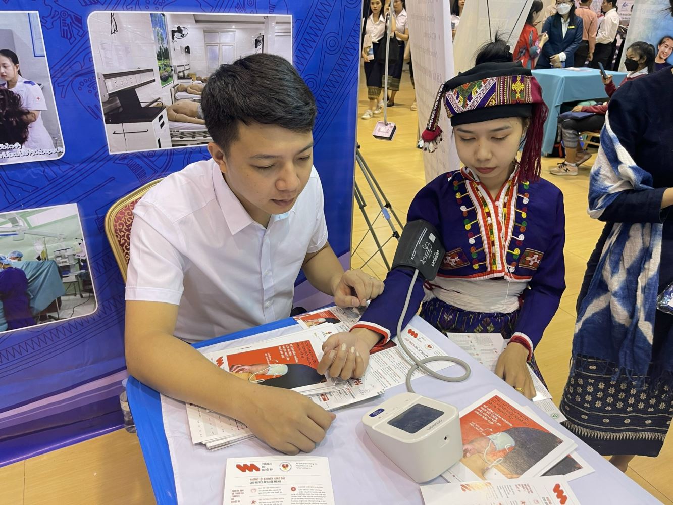 Gian hàng đại học Y khoa Vinh thu hút lượng lớn học sinh Trung học phổ thông có nhu cầu tìm hiểu về chuyên ngành khối sức khỏe. Thành viên đoàn nhận được nhiều câu hỏi về mã ngành đào tạo Y khoa, Xét nghiệm … cũng như một số thắc mắc cần giải đáp về thủ tục, quy trình đăng ký theo học tại trường; điều kiện, cơ hội hỗ trợ cho đối tượng du sinh viên Lào trong quá trình học tập; …