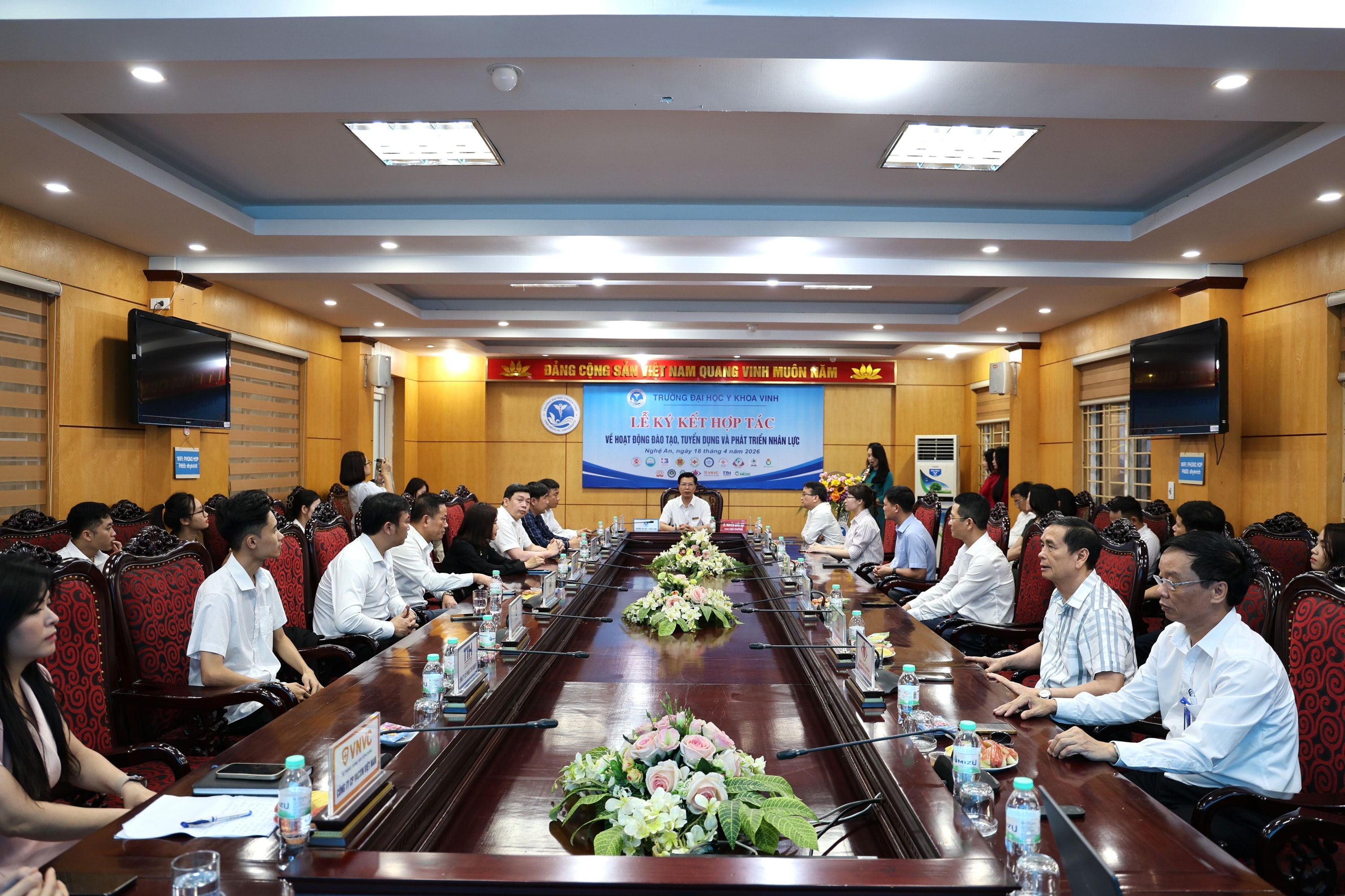 Buổi trao đổi nhận được sự đồng thuận cao của các đơn vị tham gia trong việc nhận định vị trí, vai trò và tiềm năng đào tạo cung ứng nhân lực của trường Đại học Y khoa Vinh trong hiện tại và tương lai. Với xu thế phát triển mạnh mẽ của chính sách an sinh xã hội nhân văn, bảo hiểm y tế toàn dân tế toàn dân vào năm 2030; đại diện các đơn vị mong muốn được đồng hành tiếp cận và kết nối nhân lực y tế do Nhà trường đào tạo từ sớm và lâu dài hơn nữa.