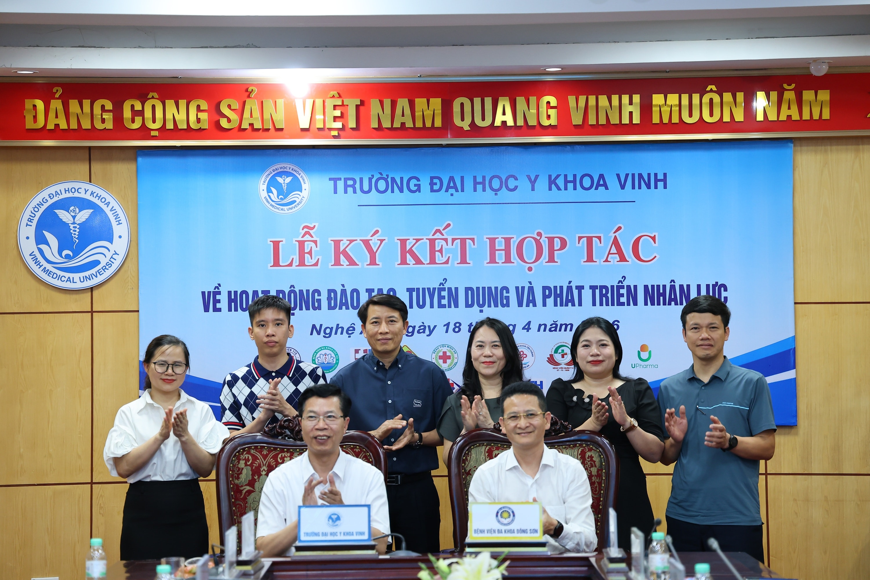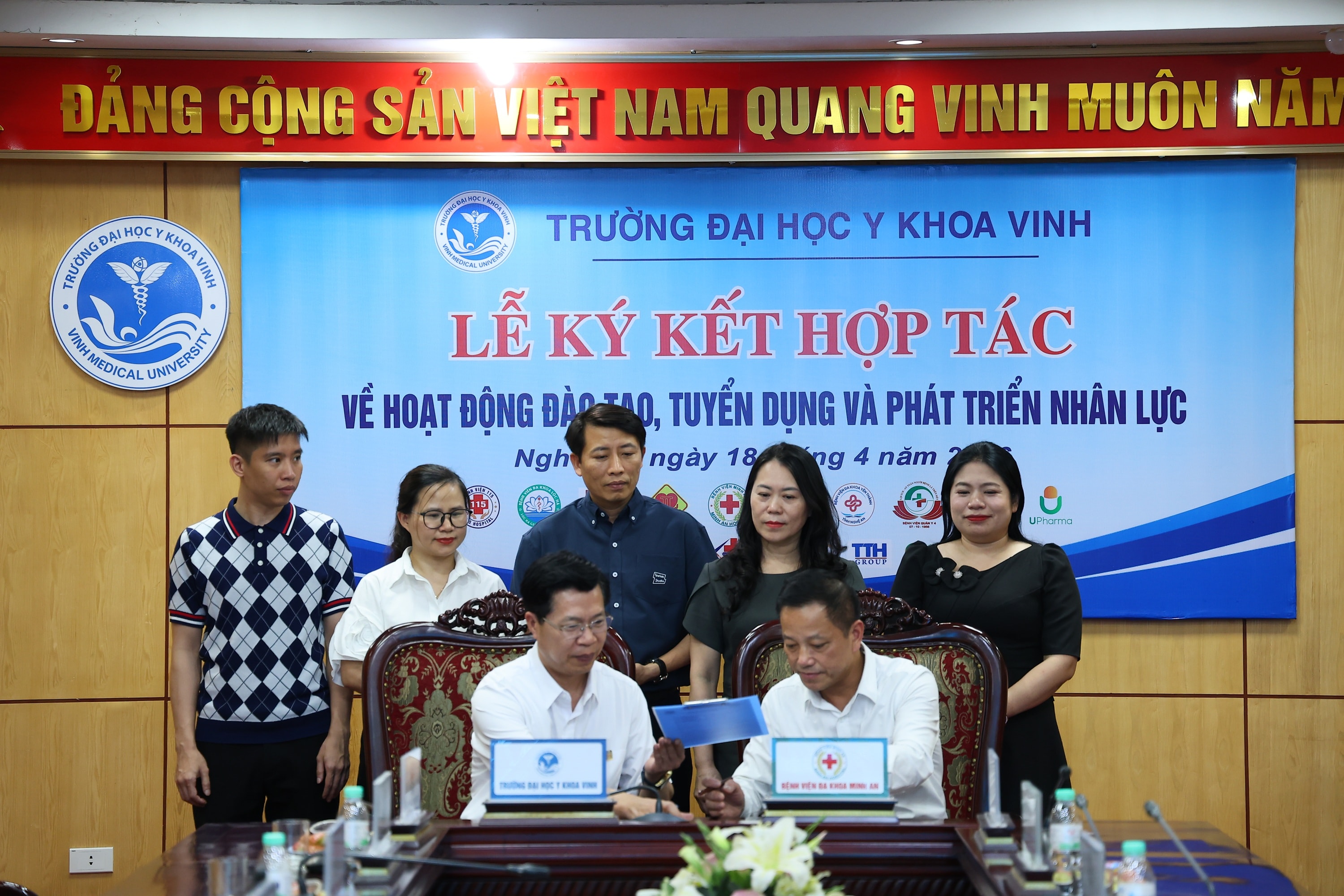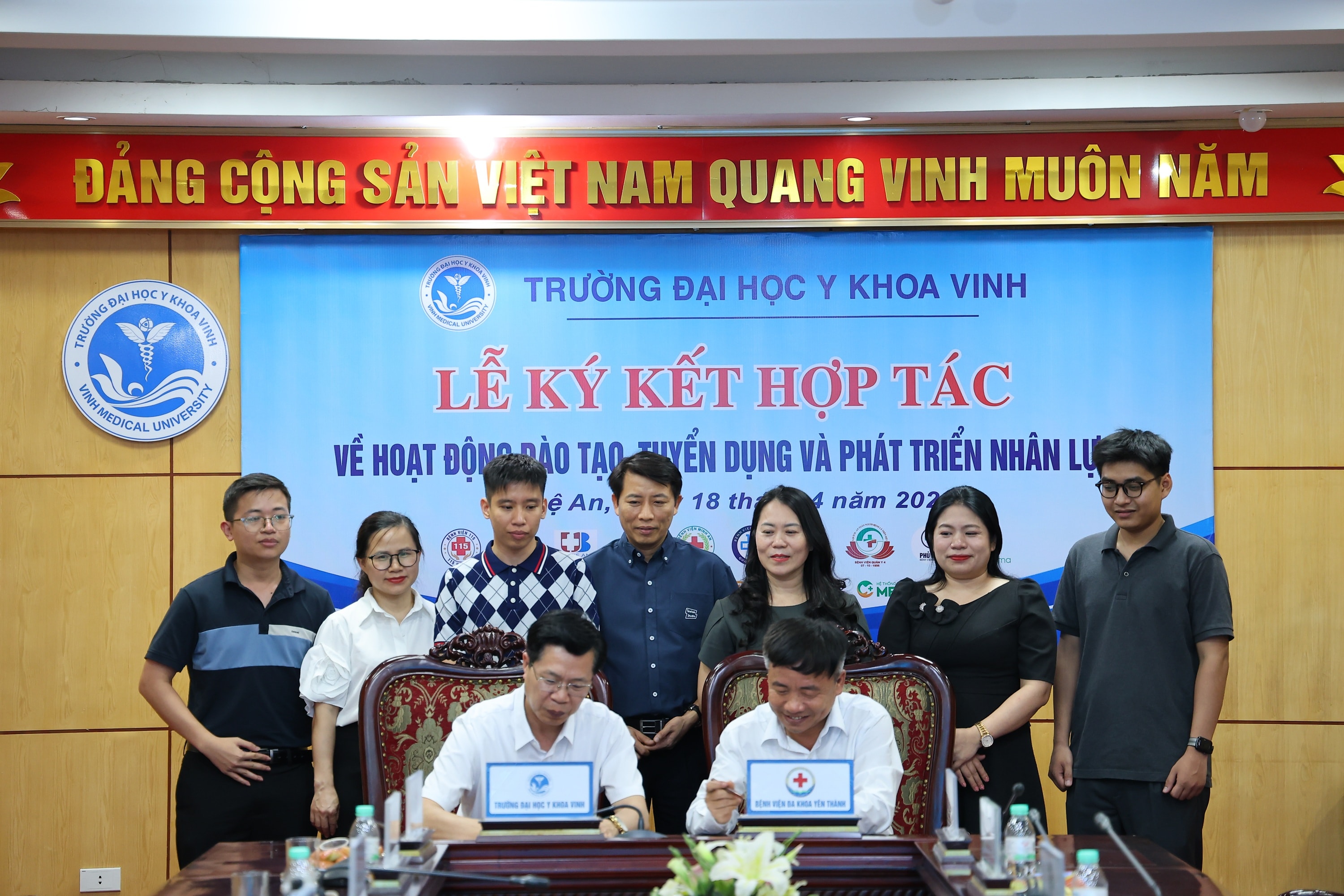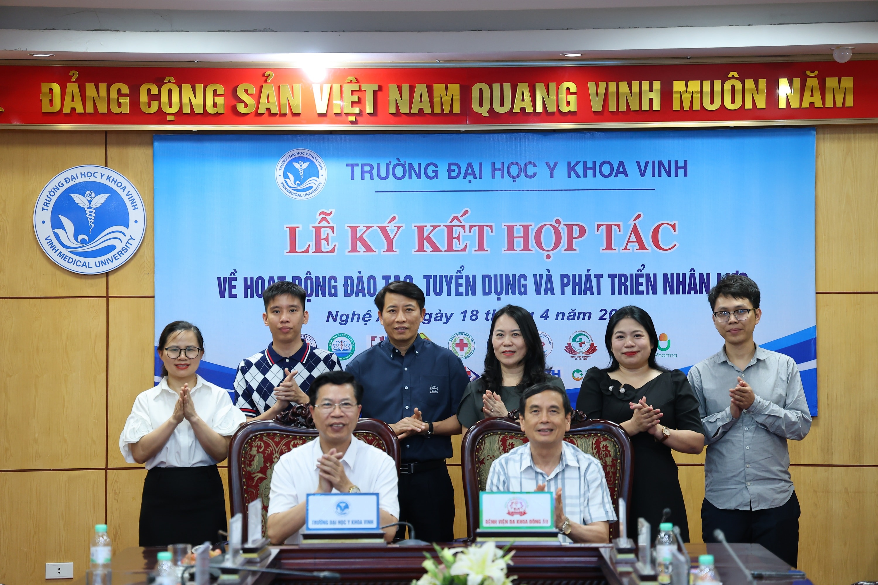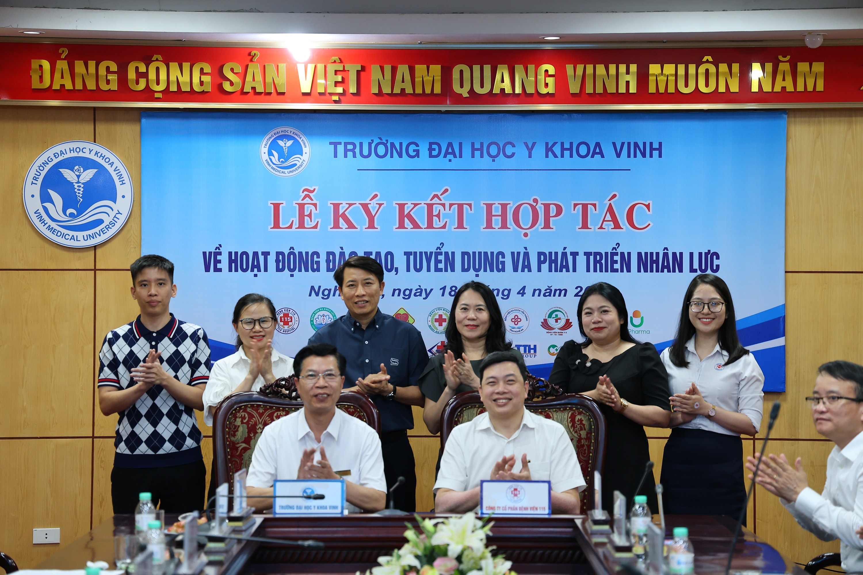 Chiều ngày 18/4, trong khuôn khổ chương trình Ngày Hội Việc làm năm 2026; trường Đại học Y khoa Vinh đã tổ chức lễ Ký kết hợp tác về hoạt động đào tạo, tuyển dụng và phát triển nhân lực với các đơn vị tham gia ngày hội năm nay.