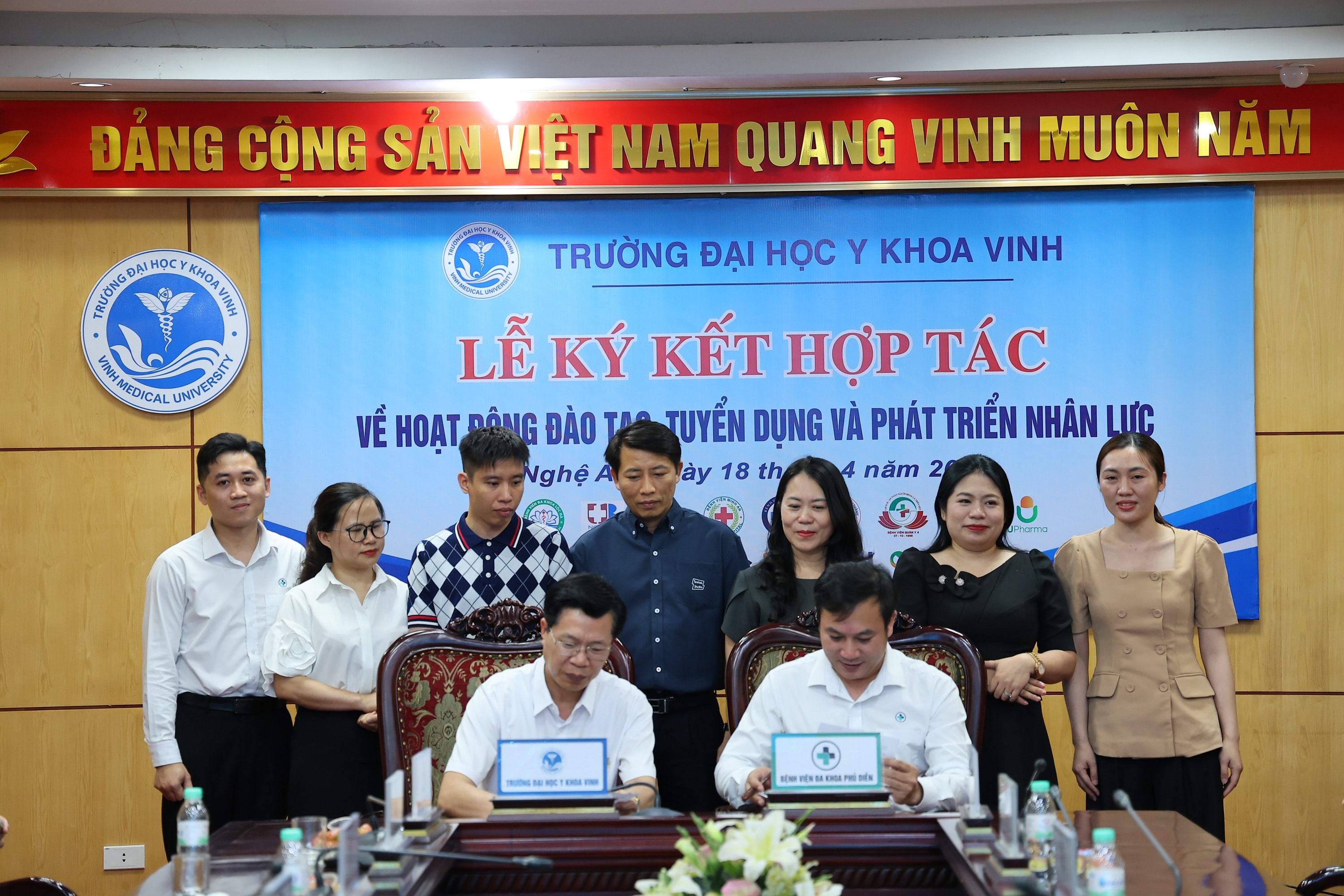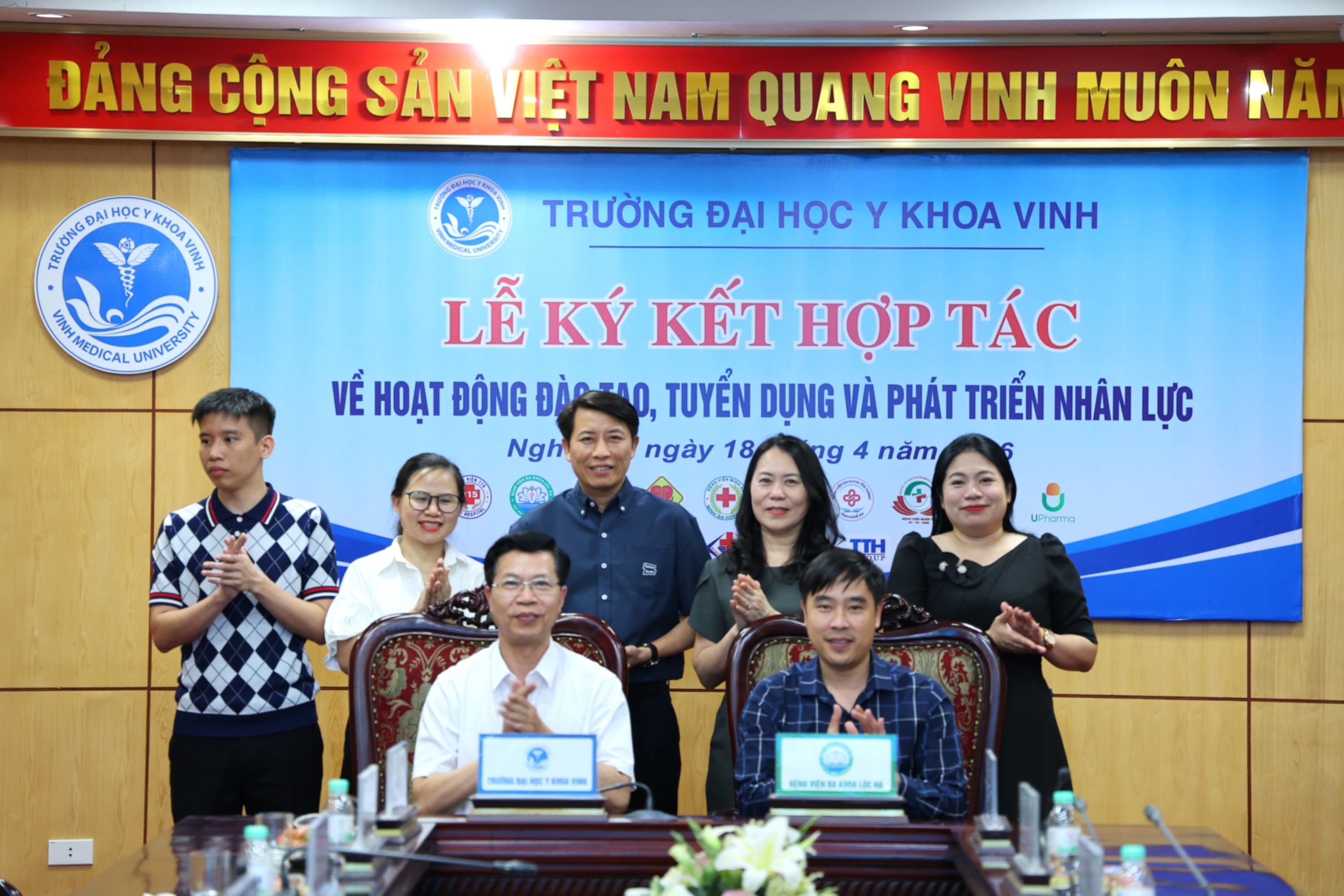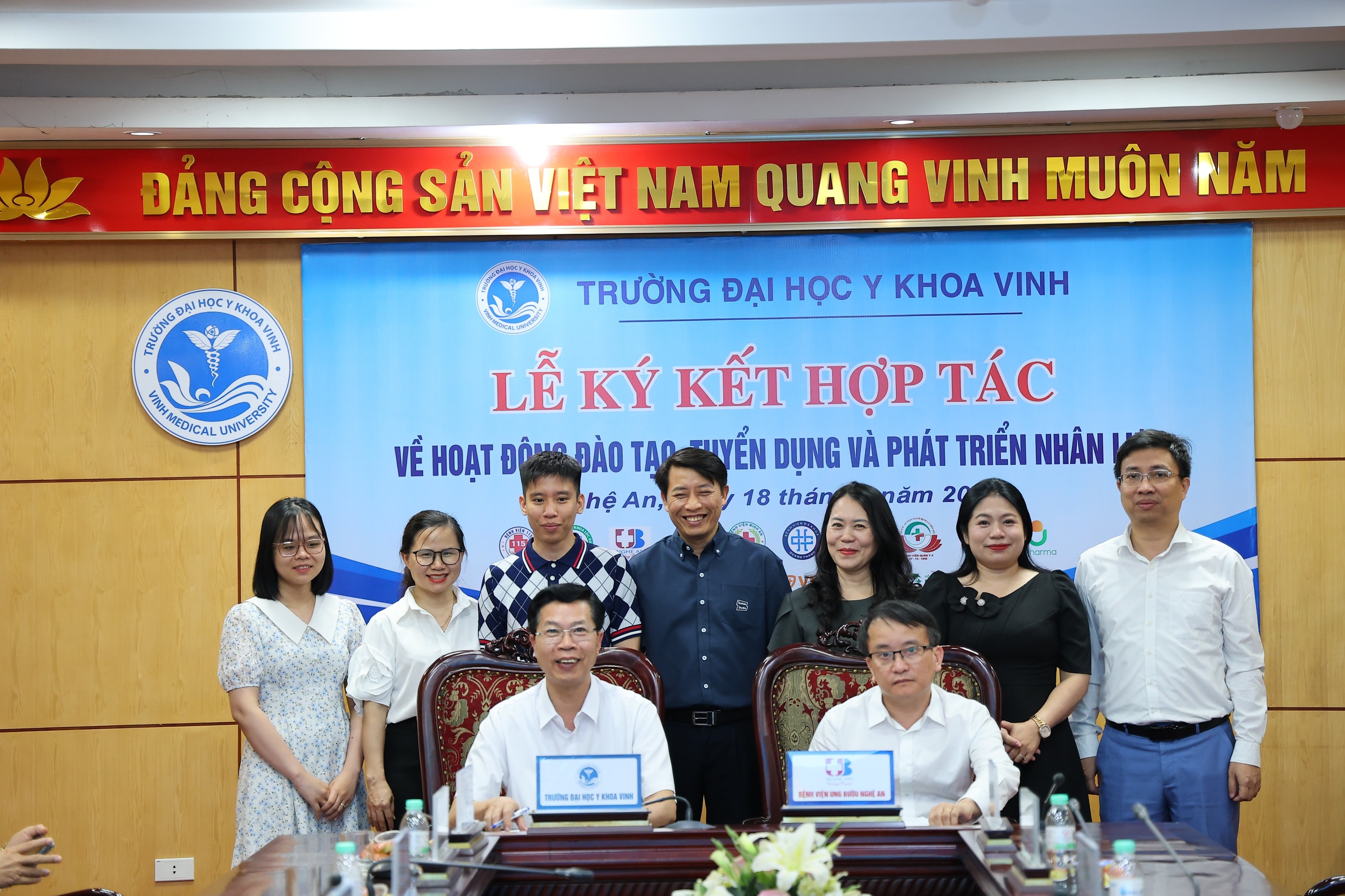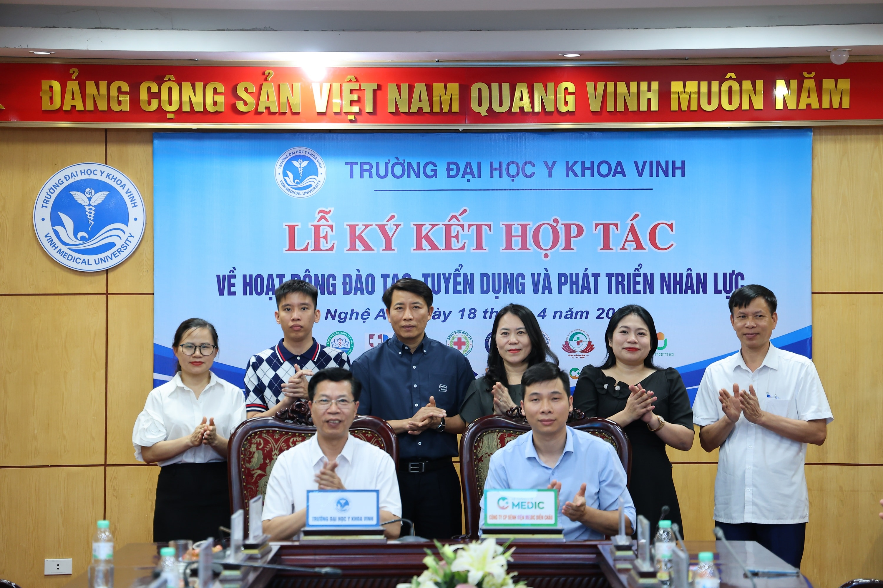 Chiều ngày 18/4, trong khuôn khổ chương trình Ngày Hội Việc làm năm 2026; trường Đại học Y khoa Vinh đã tổ chức lễ Ký kết hợp tác về hoạt động đào tạo, tuyển dụng và phát triển nhân lực với các đơn vị tham gia ngày hội năm nay.