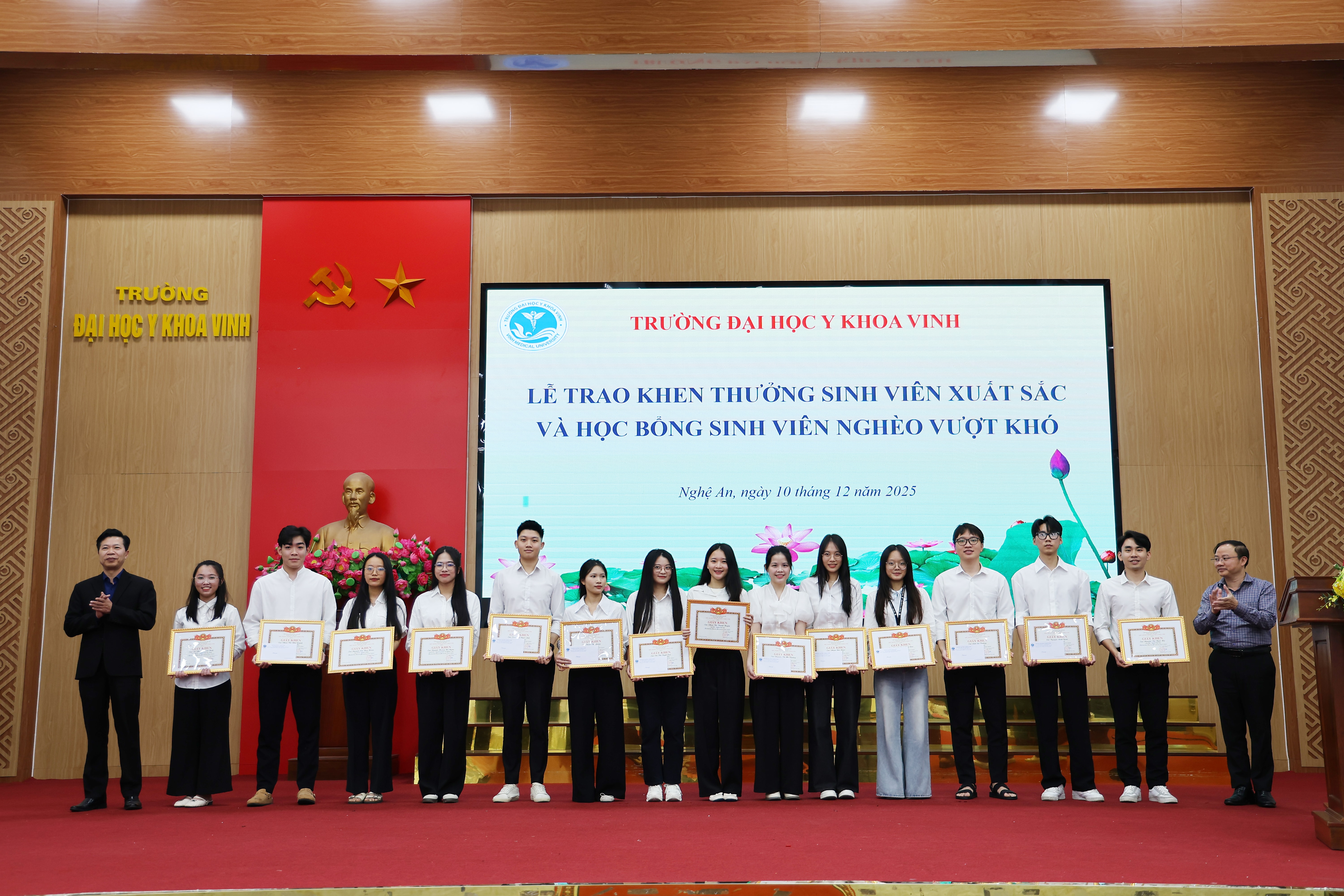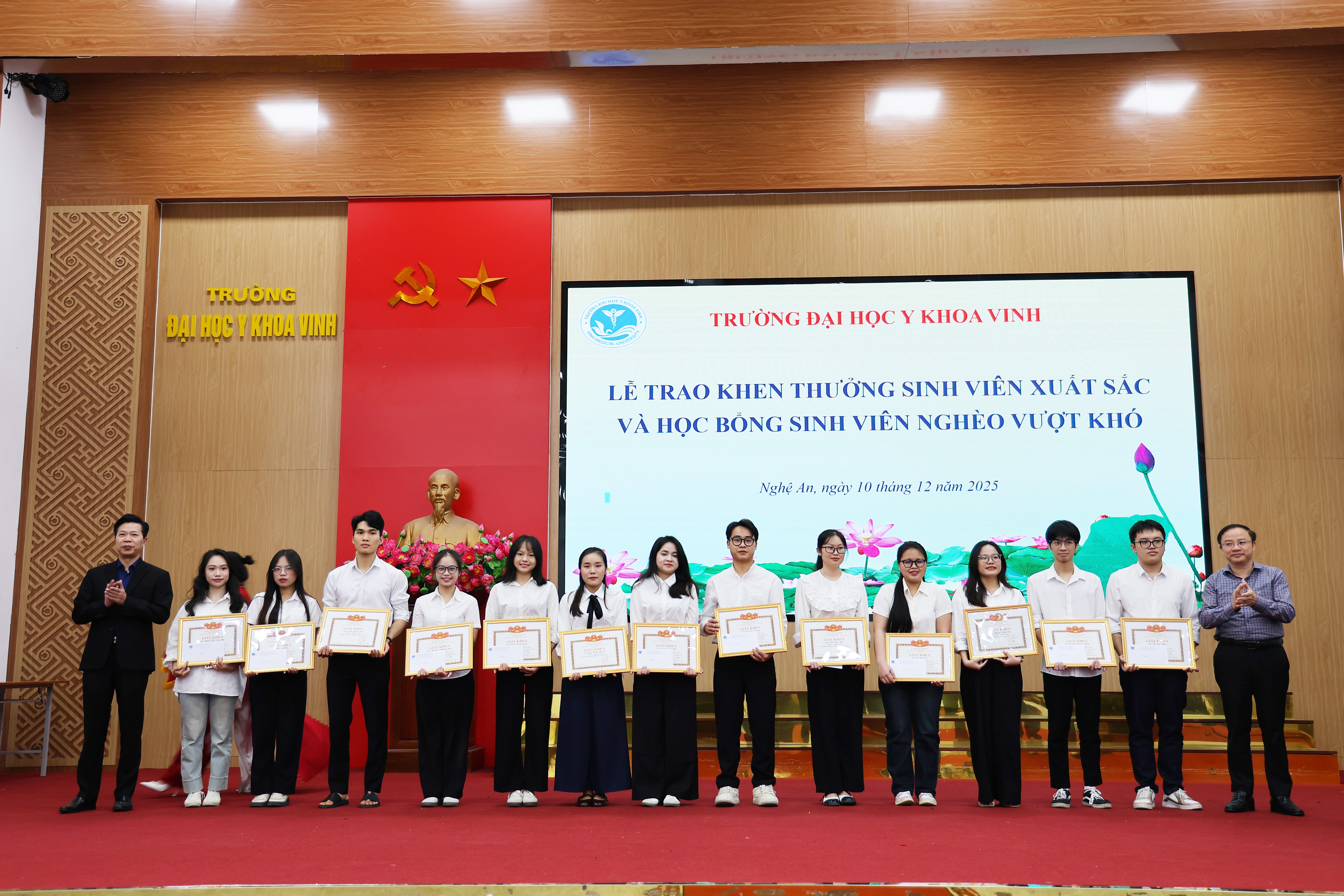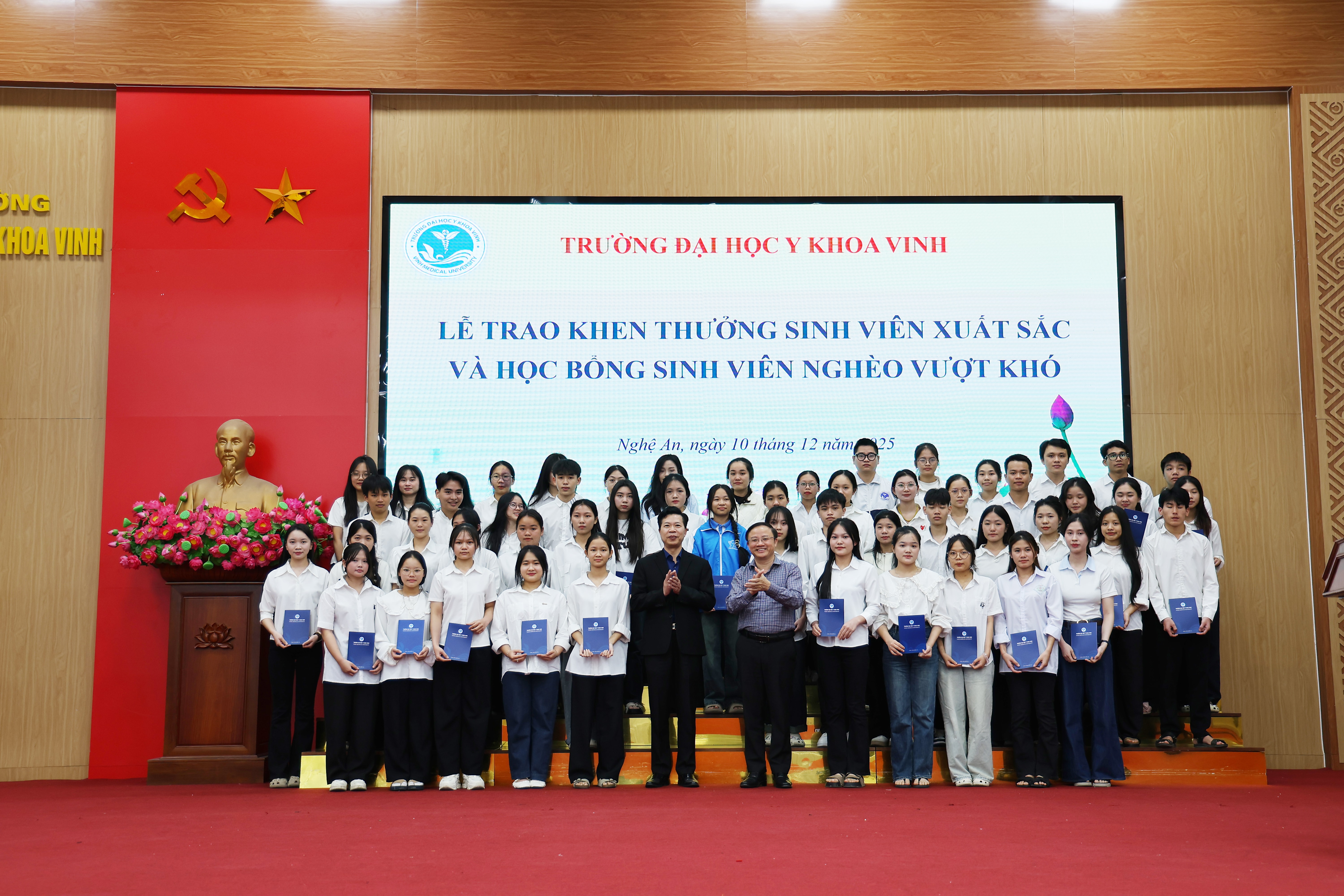 Chính sách học bổng, khen thưởng sinh viên tiêu biểu là hoạt động hỗ trợ người học mang tầm ý nghĩa và vai trò hết sức to lớn đối với sự gắn kết giữa nhà trường và sinh viên. Việc thu hút thêm sự đồng hành của các đơn vị ngoài trường là minh chứng sống động cho tôn chỉ, mục đích hoạt động của tập thể lãnh đạo, cán bộ giảng viên trường Đại học Y khoa Vinh luôn hướng tới sự nhân hậu, sẻ chia – gốc rễ cội nguồn của tấm lòng nhân ái làm nền tảng cho các cán bộ y tế tương lai trước, trong và xuyên suốt con đường chăm sóc sức khỏe cộng đồng.