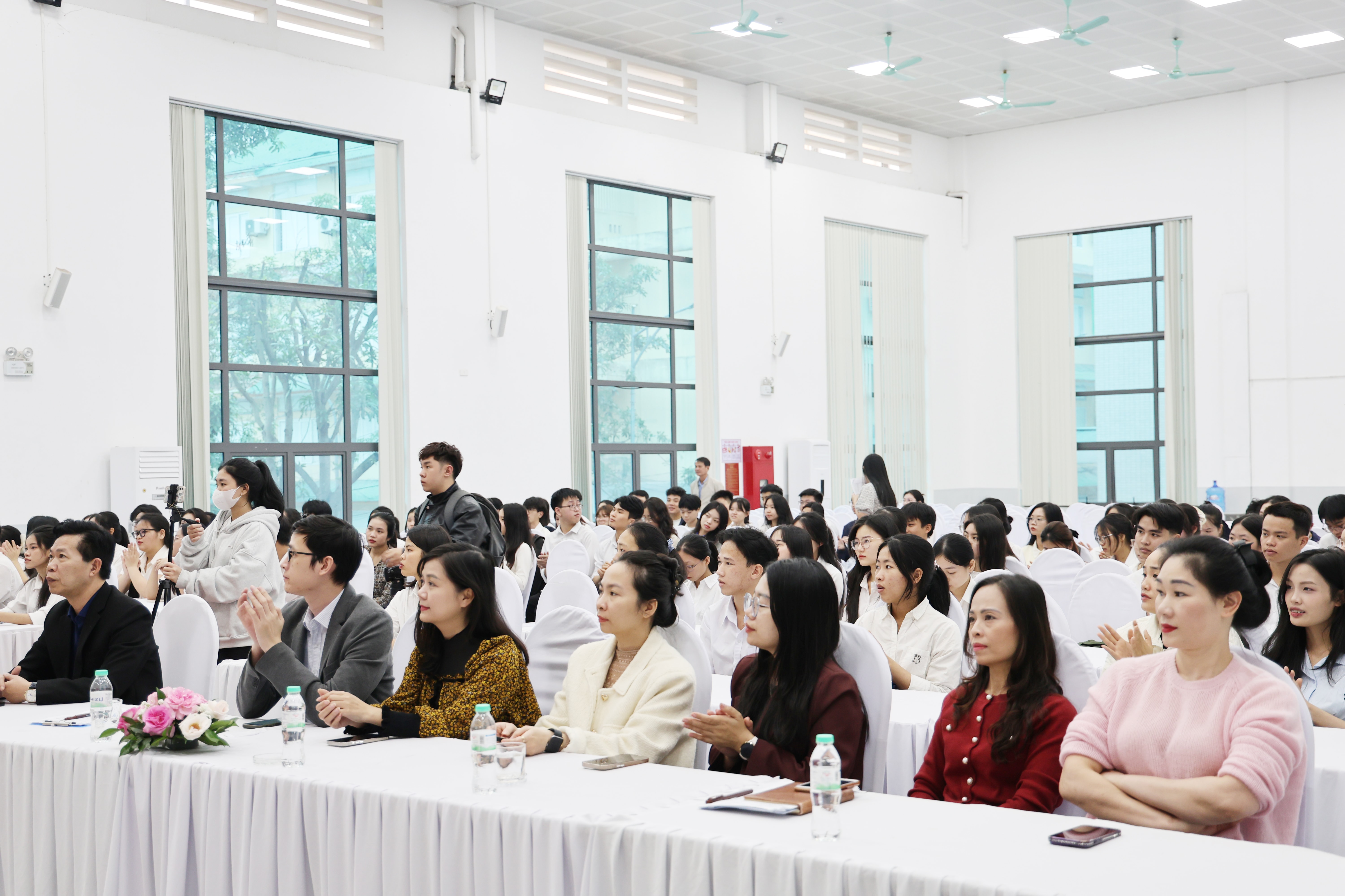 Tham dự chương trình, có PGS.TS. Nguyễn Văn Tuấn – Hiệu trưởng, Giám đốc Bệnh viện trường, TS. Nguyễn Quốc Đạt – P. Hiệu trưởng, đại diện lãnh đạo các đơn vị khoa chuyên môn, phòng chức năng và tổ chức đoàn thể, cùng đông đảo cán bộ giảng viên sinh viên nhà trường tới chia sẻ chúc mừng hơn 100 gương mặt tiêu biểu đã nỗ lực phấn đấu học tập rèn luyện trong năm học vừa qua.
