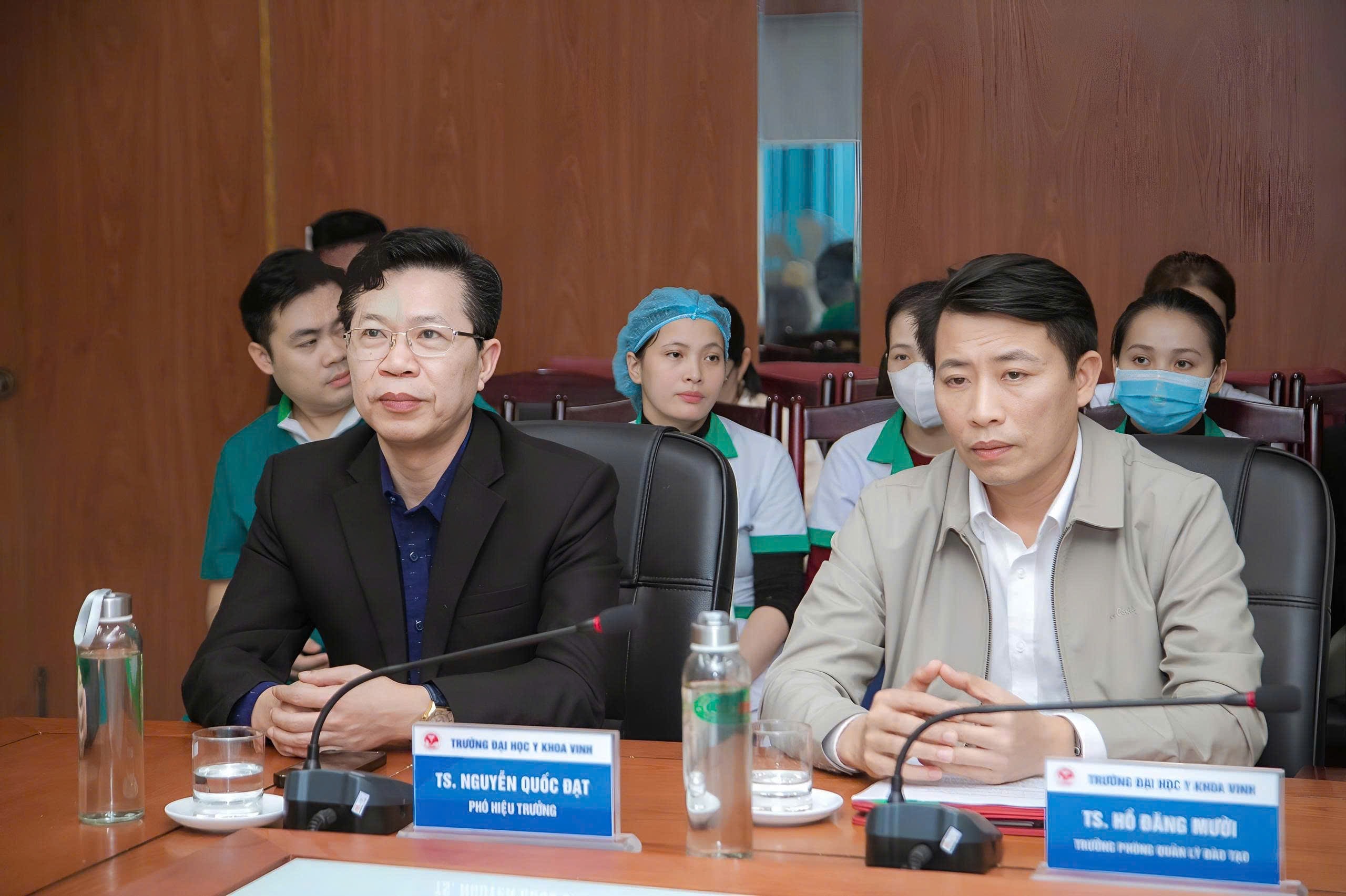 Chia sẻ tại buổi lễ, Phó Hiệu trưởng Nguyễn Quốc Đạt chia sẻ sự vui mừng, phấn khởi khi đơn vị bệnh viện Quang Khởi đã tin tưởng lựa chọn trường Đại học Y khoa Vinh trong việc đào tạo nâng cao kiến thức, kỹ năng thực hành lâm sàng về cấp cứu ngừng tuần hoàn cho đội ngũ cán bộ nhân viên y tế của mình. Đồng chí tin tưởng rằng, với sự chuyên nghiệp, tận tâm của giảng viên nhà trường, Y khoa Vinh sẽ luôn đồng hành cùng bệnh viện đa khoa Quang Khởi nói riêng và hệ thống cơ sở y tế toàn tỉnh nói chung trong việc đáp ứng yêu cầu cập nhật kiến thức y khoa liên tục trong khám, chữa bệnh theo Thông tư số 32/2023/TT-BYT của Bộ Y tế.