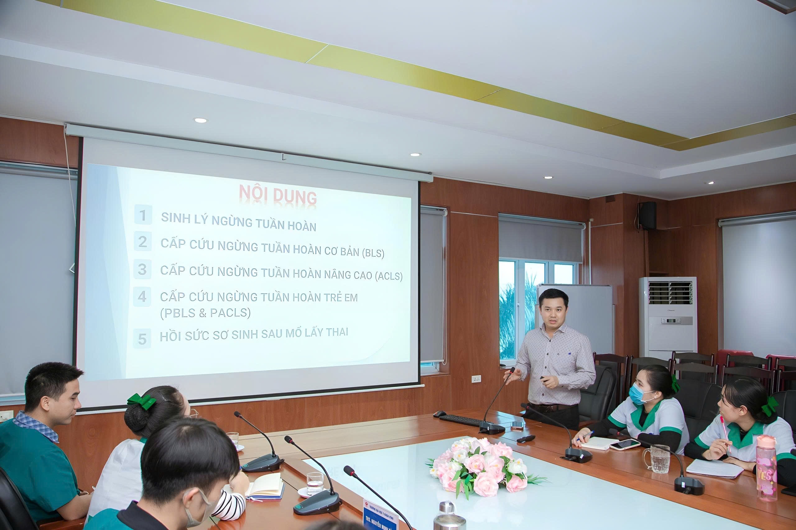 Theo đó, chương trình sđào tạo cấp cứu ngừng tuần hoàn cơ bản và cấp cứu ngừng tuần hoàn nâng cao tại Bệnh viện đa khoa Quang Khởi gồm có 3 lớp, mỗi lớp có thời gian đào tạo trong 03 ngày, gồm 24 tiết (8 tiết lý thuyết, 16 tiết thực hành).