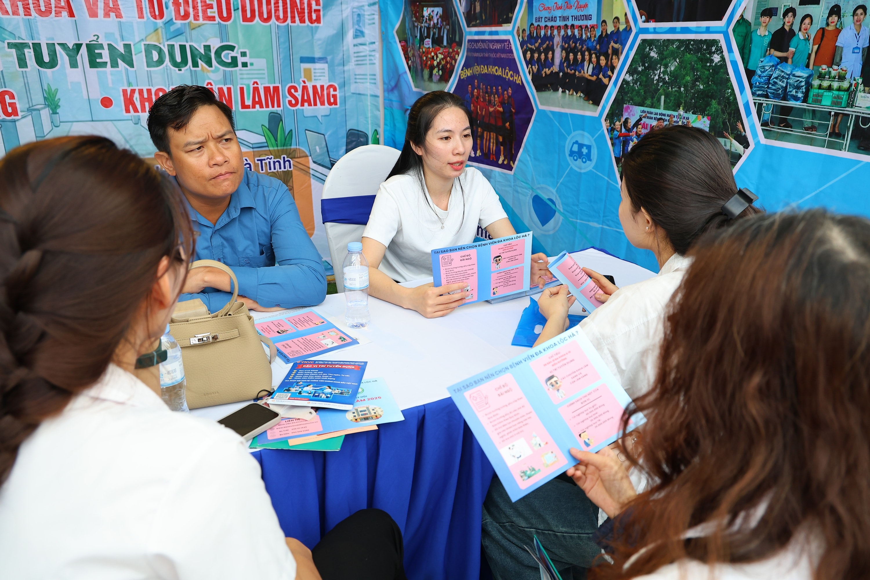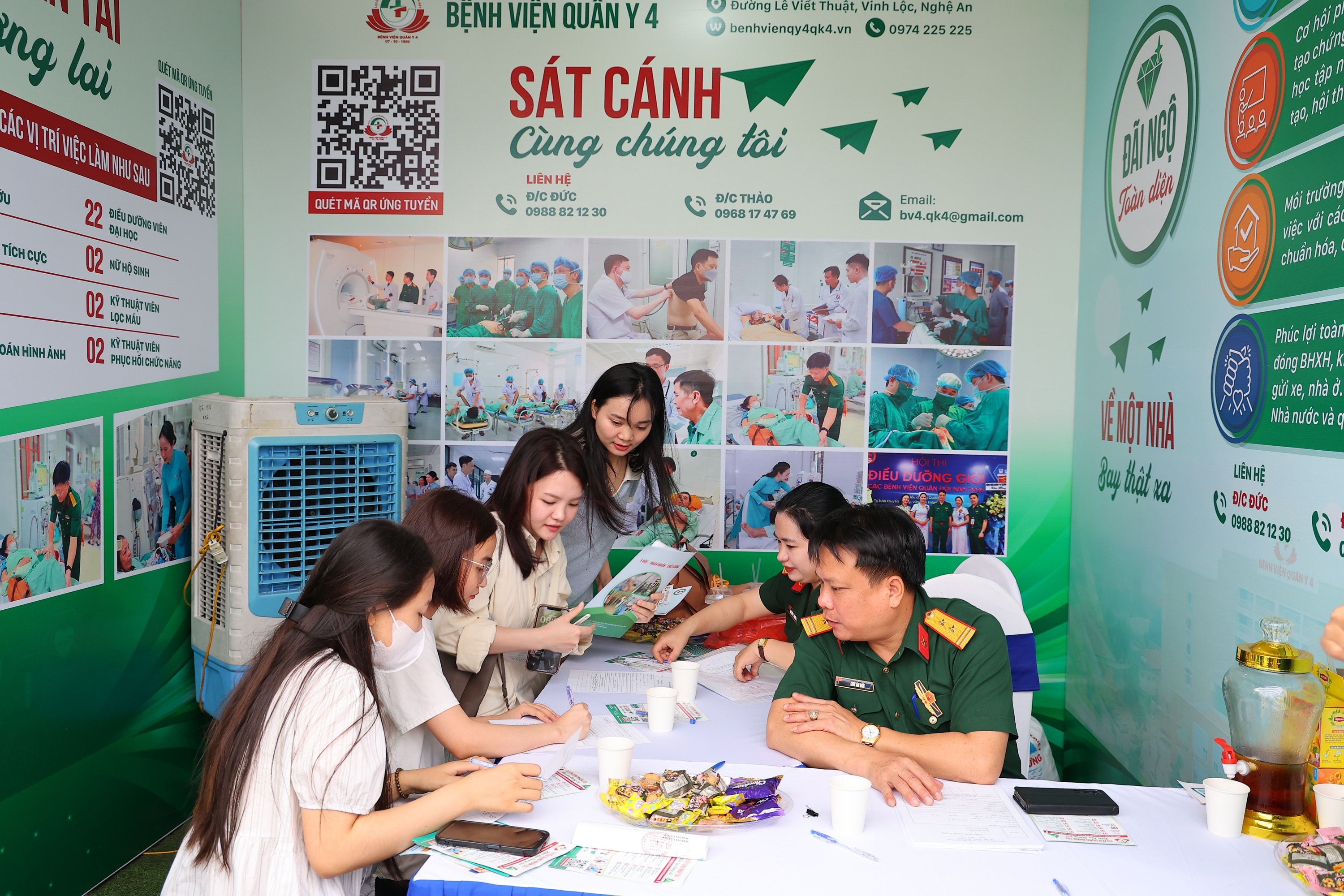 Điểm hẹn cung cầu nhân lực y tế năm nay sôi nổi và rộn ràng như thường lệ. Năm 2026 thể hiện tính hiệu quả và tầm ảnh hưởng của công tác tổ chức ngày hội trong suốt những năm qua, khi thu hút đơn vị y tế tuyến tỉnh bệnh viện Ung bướu Nghệ An, đơn vị y tế đặc thù Quân Y 4, công ty cổ phần bệnh viện 115 – một đơn vị y tế ngoài công lập có quy mô và sự phát triển vượt trội của tỉnh nhà - gia nhập chương trình đã vừa gia tăng tính cạnh tranh, vừa mở rộng sự lựa chọn cho sinh viên.